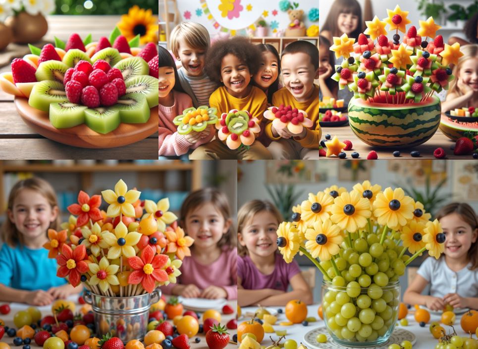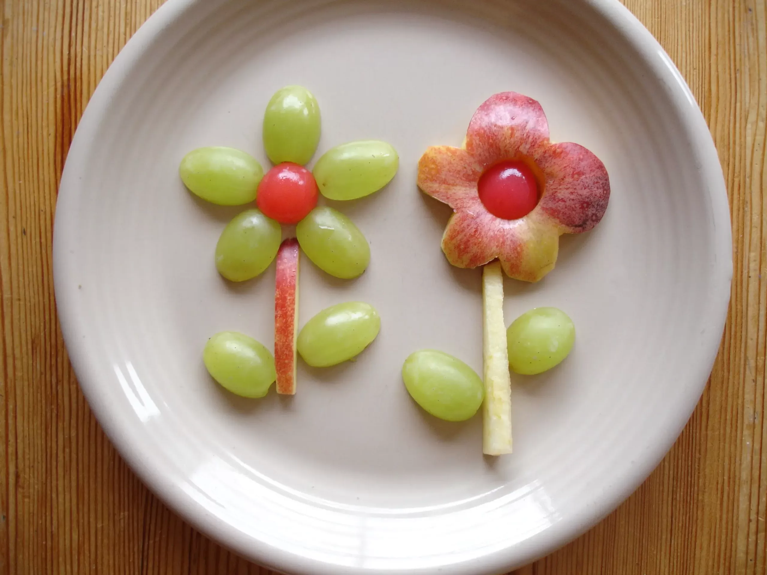 Snijd de ananas in plakken van ongeveer 1,5 cm dik. Steek het koekvormpje in de ananas. Leg een framboosje of besje boven op de ananas en je bloem is klaar! Er kan divers fruit gebruikt worden. De bloem zou ook gemaakt kunnen worden uit een kiwi, dat is alleen wat zachter dan een ananas. Als je ook een steeltjes aan de bloem wilt maken kun je een lange satéprikker gebruiken en vol rijgen met druiven. Dit kan ook met andere fruitsoorten zoals bessen.